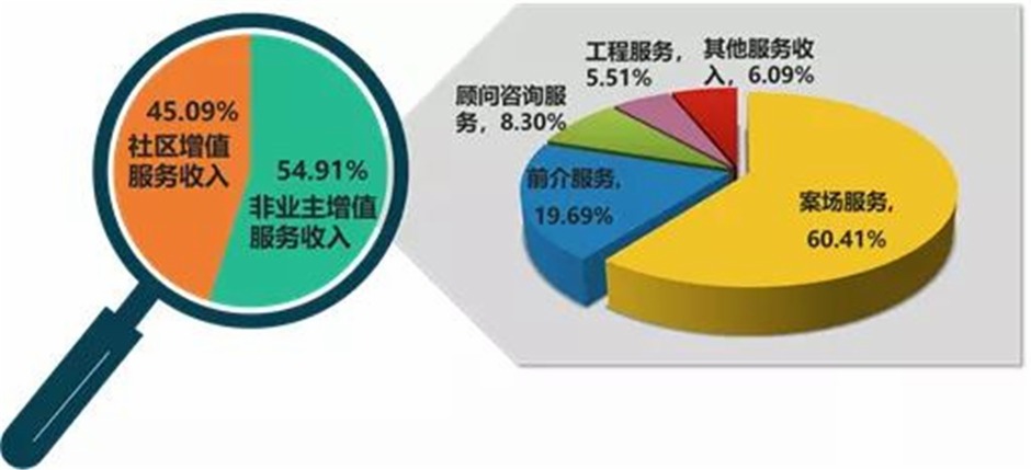 非業主增值服務仍是多種經營收入主要貢獻力量,案場服務、前介服務占比最高