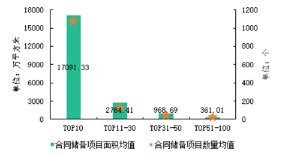 TOP10企業平均儲備量高達1.71億平方米,頭部效應顯著