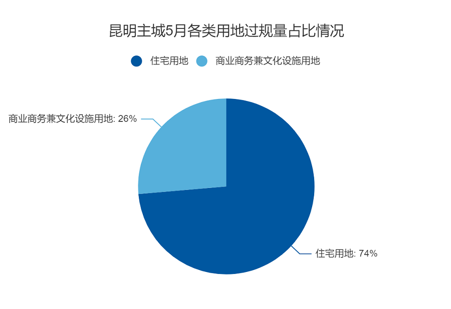 昆明主城各區域5月過規量占比,本月僅盤龍區和官渡區有項目過規