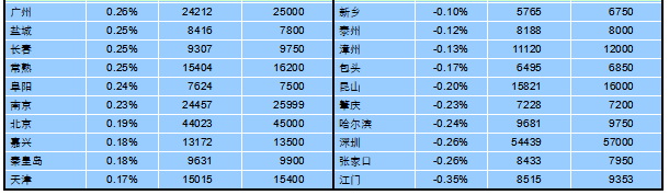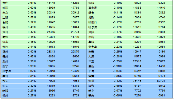 百城二手住宅價(jià)格環(huán)比漲跌幅分析
