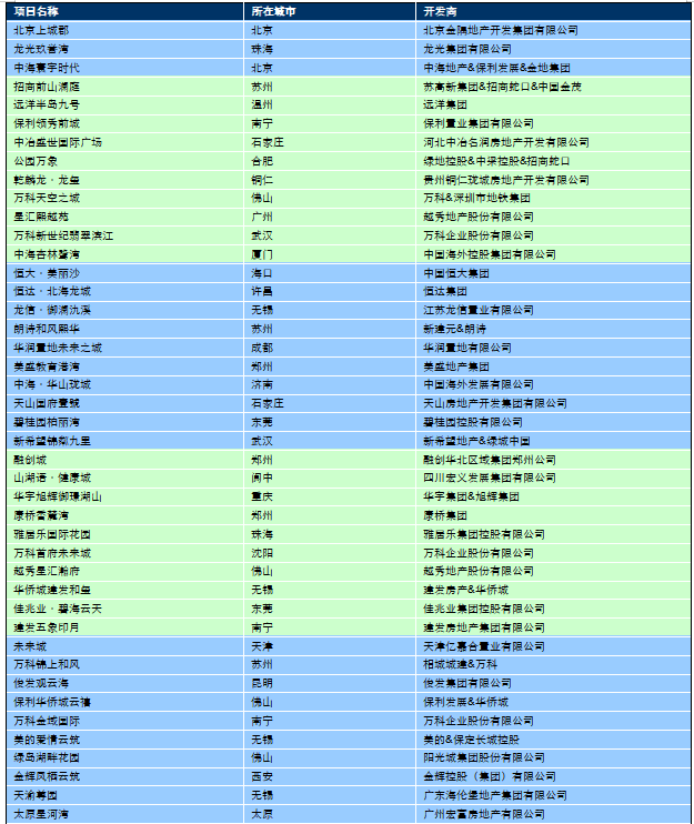 百城價(jià)格指數(shù)典型樣本項(xiàng)目