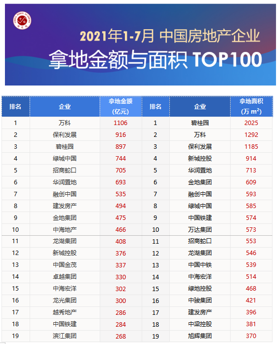 1. 拿地累計(jì)總額同比下降3.0個(gè)百分點(diǎn) ,代表企業(yè)7月拿地總額同比、環(huán)比顯著下降