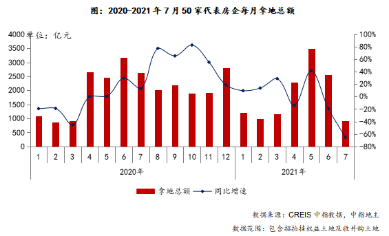 1、拿地累計(jì)總額同比下降3.0個(gè)百分點(diǎn) ,代表企業(yè)7月拿地總額同比、環(huán)比顯著下降