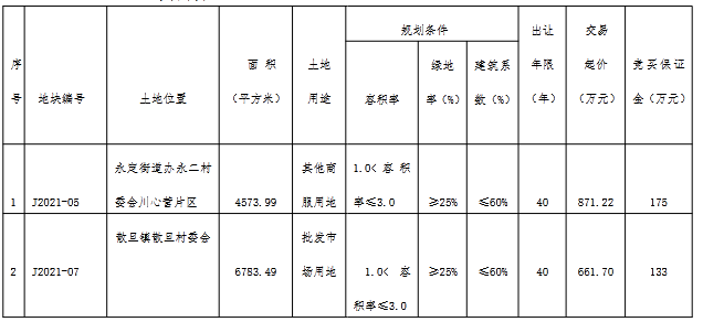 根據《中華人民共和國土地管理法》、《中華人民共和國城鎮國有土地使用權出讓和轉讓暫行條例》、《招標拍賣掛牌出讓國有建設用地使用權規定》等相關法律、法規規定,經富民縣人民政府“富政復[2021]59號、60 號”文件批準,富民縣自然資源局委托富民縣公共資源交易中心以網上公開掛牌出讓以下J2021-05、J2021-07等貳宗國有建設用地使用權,現將有關事項公告如下: