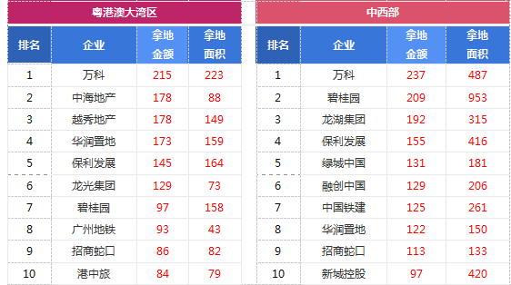 從各城市群拿地金額來看,長三角遠高于其他城市群。1-8月,長三角TOP10企業拿地金額3448億元居四大城市群首位,其中,碧桂園持續擴大長三角地區的戰略布局,領跑長三角,金地集團憑借226億元進入排名前十;中西部TOP10企業拿地金額1510億元,位列第二,其中,萬科加強中西部地區的拿地力度,萬科1-8月拿地金額237億元;粵港澳大灣區TOP10企業拿地金額1378億元,位列第三,其中,華潤置地于8月在粵港澳大灣區拿地金額56億元,位列三甲之后。拿地面積來看,中西部TOP10企業拿地面積以3522萬平方米居四大城市群首位。