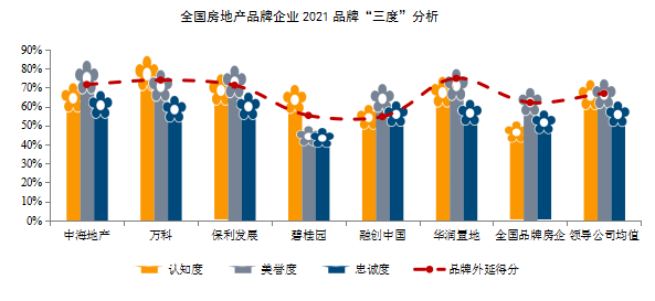 2021中國(guó)房地產(chǎn)品牌價(jià)值研究中,研究組以品牌企業(yè)的“品牌三度”為維度進(jìn)行了問(wèn)卷調(diào)查,結(jié)果顯示:全國(guó)品牌企業(yè)的認(rèn)知度、美譽(yù)度和忠誠(chéng)度均值分別為52.54%、70.24%和58.37%,品牌三度繼續(xù)保持穩(wěn)步提升,其中品牌忠誠(chéng)度和美譽(yù)度增長(zhǎng)明顯。