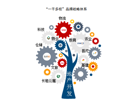 在品牌譜系管理的戰(zhàn)略規(guī)劃中,品牌企業(yè)采用“一干多枝”的戰(zhàn)略體系,構(gòu)建“樹(shù)大根深、枝繁葉茂”的品牌家族繁榮景象。通過(guò)以地產(chǎn)開(kāi)發(fā)作為主干領(lǐng)域深耕細(xì)作,進(jìn)行品牌升級(jí)與開(kāi)發(fā);不斷向新興領(lǐng)域進(jìn)行拓展延伸枝椏,實(shí)現(xiàn)品牌譜系的多元化發(fā)展;最后,以枝椏領(lǐng)域的拓展反哺主干領(lǐng)域,鞏固主干粗壯如虬,構(gòu)建茂盛的品牌譜系。