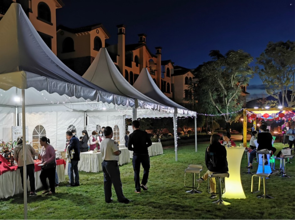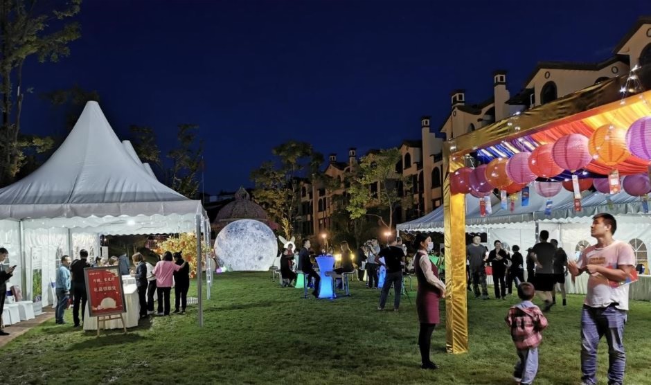 又是一年中秋節,在這相逢團圓的美好時刻,9月18日 18:00駱駝灣·榮府舉辦了一場“月圓·家更圓”相聚駱駝灣,中秋賞月活動。此次活動在駱駝灣·榮府園區草坪舉行,活動現場開展了猜燈謎、豎琴表演、玩游樂園(套圈、投壺)等傳統中秋活動讓到場的各位嘉賓游玩娛樂。現場還準備了獨具中秋節日韻味的自助茶歇、月餅、紅酒、冷餐等供到場嘉賓品嘗,在游玩、娛樂、暢聊之余賞月品茶。