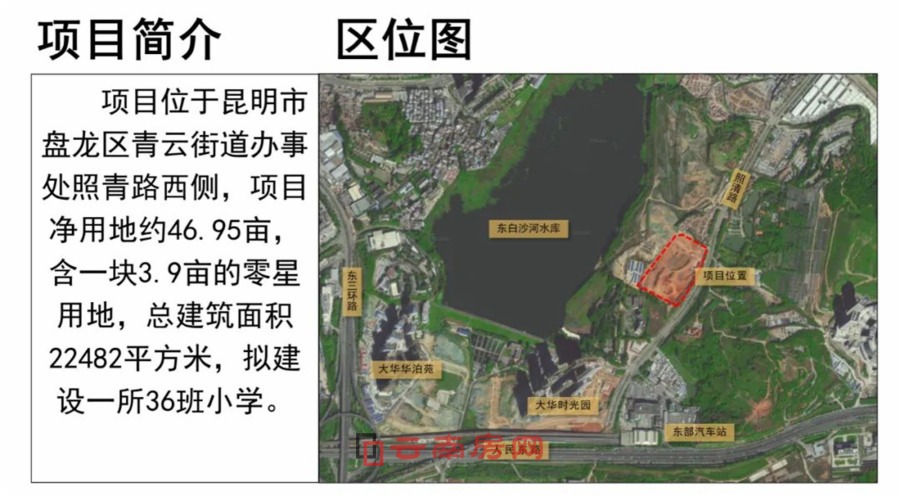 項目名稱:盤龍區東白沙河片區36班小學項目