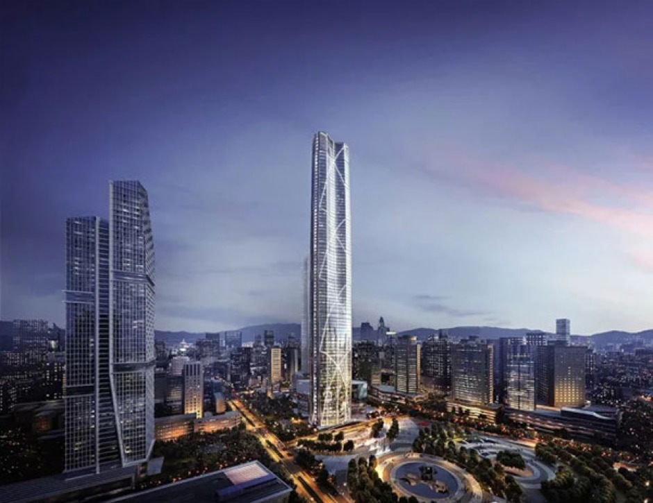 位于東風(fēng)廣場(chǎng)的春之眼效果圖,北塔高407米