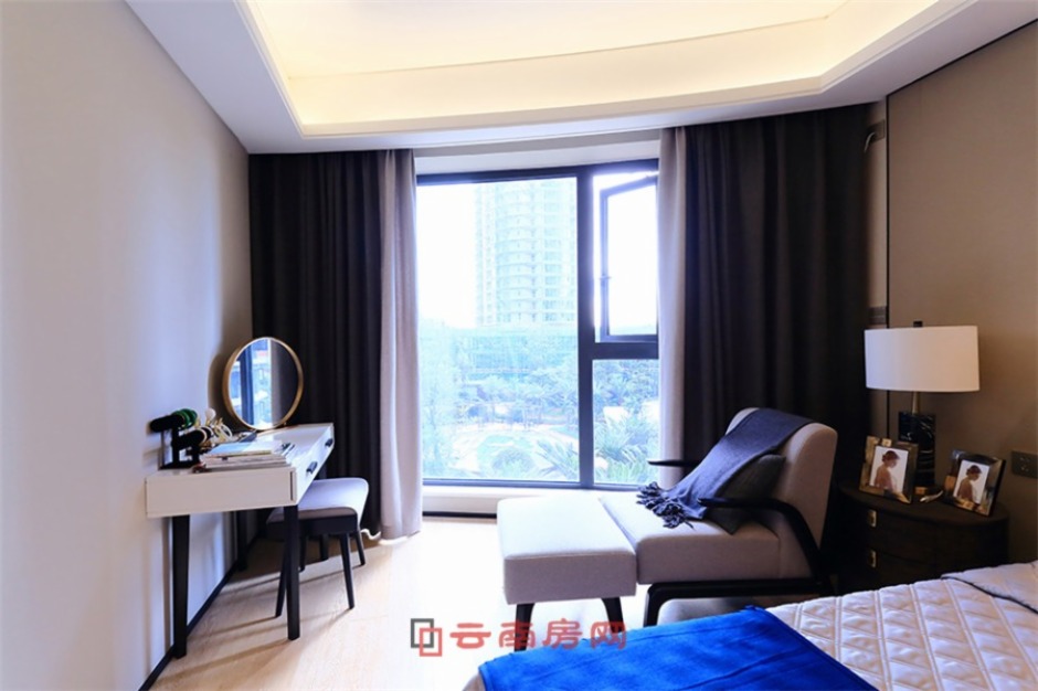主臥套房設(shè)計(jì),雙立柜衣帽間,主衛(wèi)有雙洗漱臺(tái),以及大浴缸、大落地窗,在家就能體驗(yàn)五星級(jí)酒店式的待遇;兒童房緊鄰著主臥,方便主人照看小孩;書房帶獨(dú)立小陽(yáng)臺(tái),想象一下,在一個(gè)陽(yáng)光照耀的午后,在書房看書,十分愜意。美中不足的是,該戶型房間格局不夠方正。