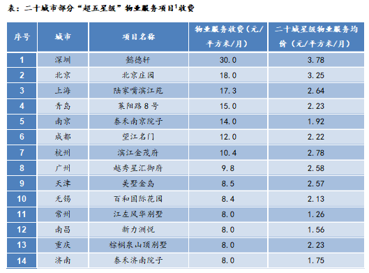 1.二十城“超五星級”物業服務項目質價水平遠高于星級項目均值