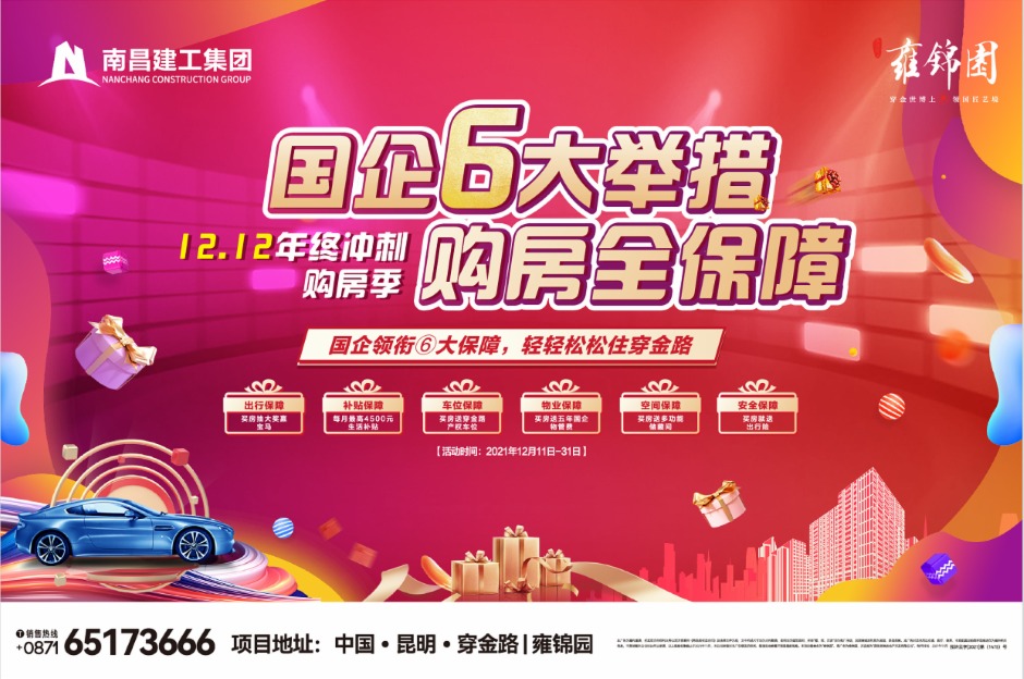 2021雙12年終沖刺購房季正式啟動,雙國企匠心領銜的穿金路品質紅盤雍錦園,重磅推出“國企6大舉措·購房全保障”活動。即日起到2021年12月31日期間,購買雍錦園即可享受“6大購房全保障”。一、出行保障,購房即可參與幸運大抽獎贏寶馬座駕;二、補貼保障,購房成交每月最高享4500元生活補貼;三、車位保障,購房即送穿金路產權車位;四、物業保障,買房即送五年國企物管費;五、空間保障,買房即送多功能儲藏間;六、安全保障,買房即送出行險。購房全保障旨在雙國企護航讓客戶更買房放心,交房更安心。從生活出行實現全方位保障,國企領銜共同富裕,輕松入住穿金路!
