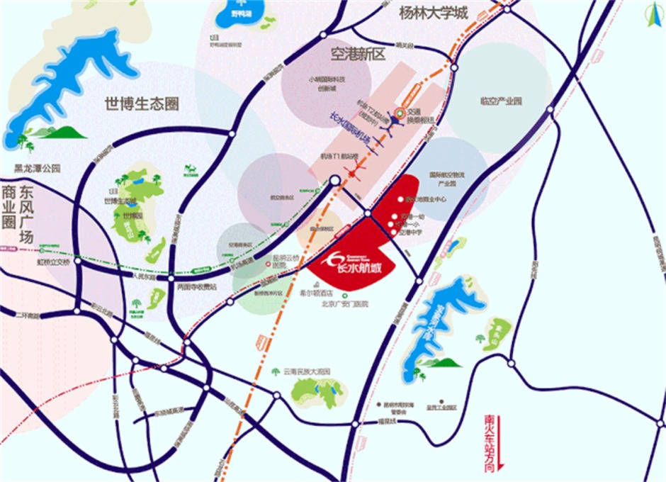 長水航城是空港新區千畝綜合大盤項目,集居住中心、商業中心、酒店集群、主題公園、商務中心、學校和醫療機構于一體。