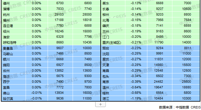 2022年2月,新建住宅價格環比下跌的城市個數為52個,較上月增加6個。具體來看,湛江、桂林以及溫州環比跌幅較大,分別為1.19%、0.68%和0.64%;南京、包頭環比分別下跌0.39%、0.34%;南昌、天津等19個城市跌幅在0.1%(含)-0.3%之間;湖州、邯鄲等28個城市跌幅均在0.1%以內。