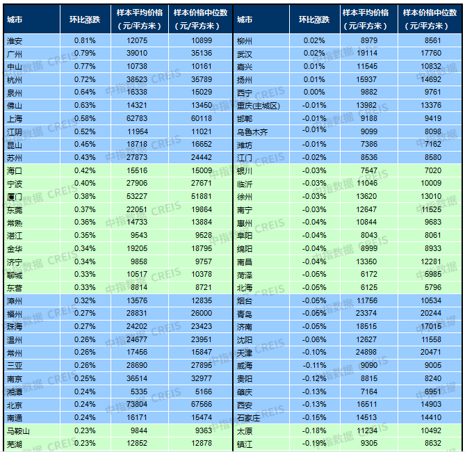 2022年2月,二手住宅價格環比上漲的城市個數為54個,較上月增加20個。具體來看,淮安、廣州等8個城市本月環比漲幅超過0.5%,其中淮安最高,為0.81%;昆山、蘇州等34個城市漲幅在0.1%-0.5%之間;無錫、長春等12個城市漲幅在0.1%以內。本月西寧二手住宅價格與上月持平。