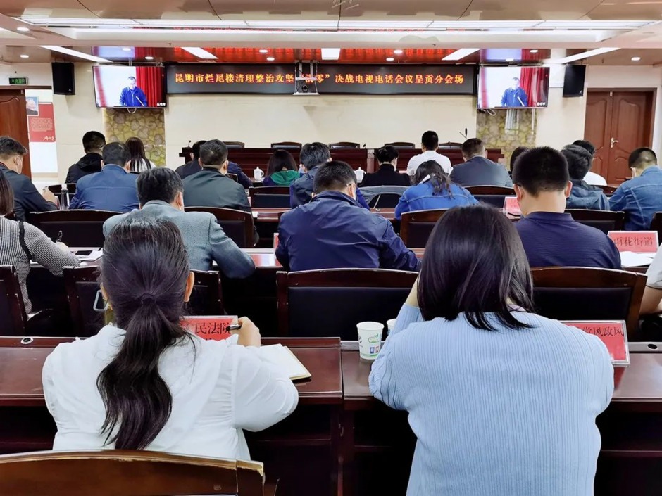 昆明市爛尾樓清理整治攻堅“清零”決戰電視電話會議呈貢分會場(圖源呈貢發布)