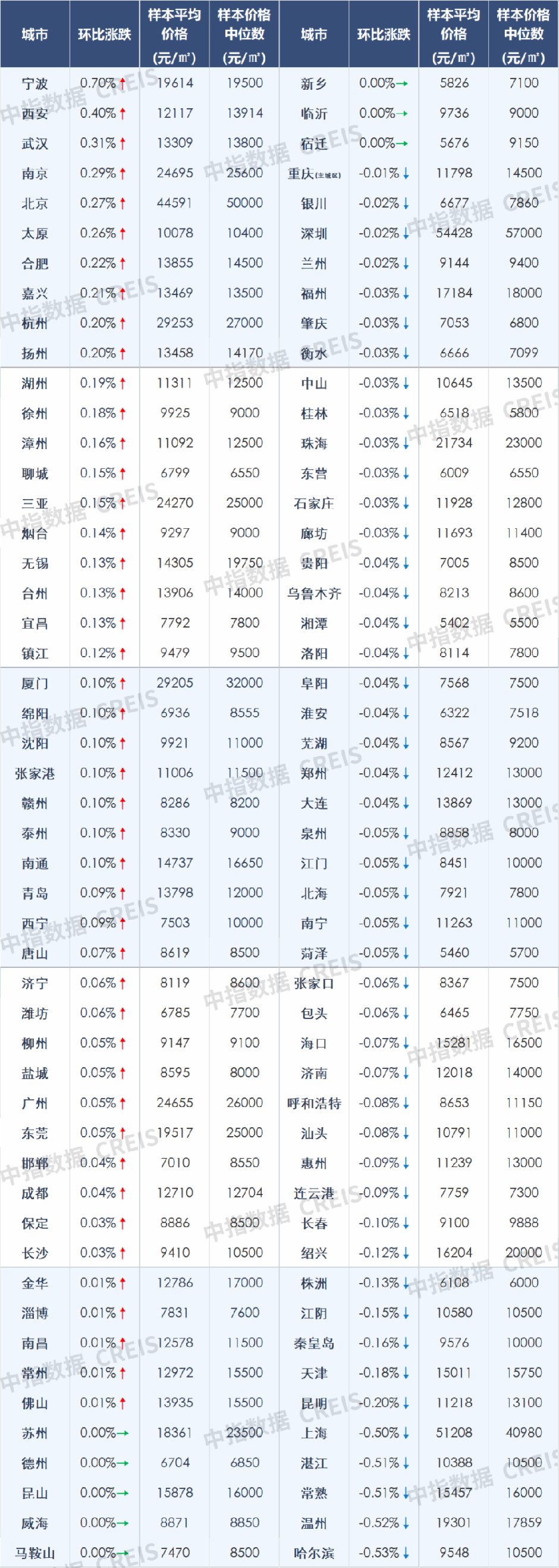 百城新建住宅價(jià)格環(huán)比漲跌幅分析