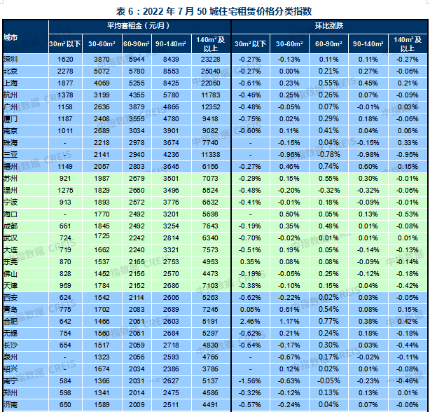 表5:2022年7月50城住宅租賃價(jià)格指數(shù)