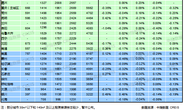 50城住宅平均租金環(huán)比漲跌幅分析