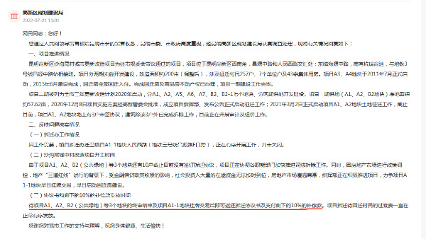 但既然情況都如此了,為何高新區(qū)還會(huì)將地塊掛出呢?根據(jù)高新區(qū)規(guī)劃局今年7月在人民網(wǎng)上的留言,云南房網(wǎng)疑似找到一些原因: