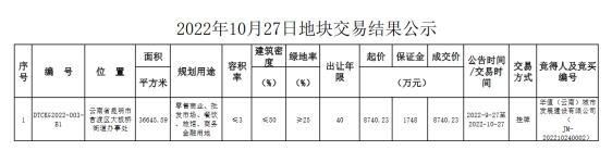 DTCKG2022-003-B1號地塊被華值(云南)城市發(fā)展建設(shè)有限公司斬獲