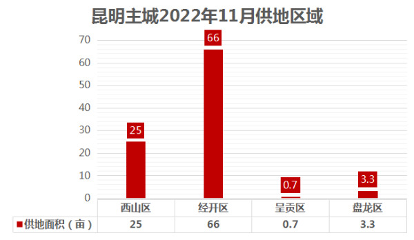 在主城區(qū)中,經(jīng)開(kāi)區(qū)供地面積最大,計(jì)劃在本月供應(yīng)約66畝土地,交易起拍金額約3565萬(wàn)元;其次為西山區(qū),計(jì)劃供地25畝,交易起拍金額約941萬(wàn)元。呈貢和盤龍區(qū)零星供地4畝,總交易起拍價(jià)約1251萬(wàn)元。官渡、五華等區(qū)未參與供地。