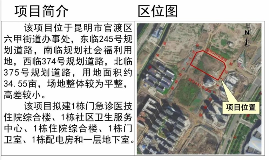 昆明市官渡區康復醫院建設項目批前公示