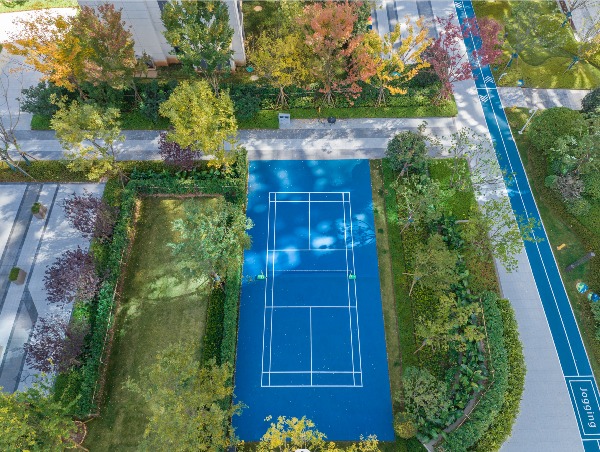 這一方面固然是因為,園景在設計之初就選取不一味強調植物品種和數量的堆疊,而選用高大的樹木與低矮的灌木形成立體感,同時大量配以紅楓、木槿、銀杏等彩色樹種增加了色彩豐富度的概念。實際上,據新希望地產園景師透露,最終的呈現效果是在原有方案基礎上,對園林植被升級過的,因此層次效果更為顯著。