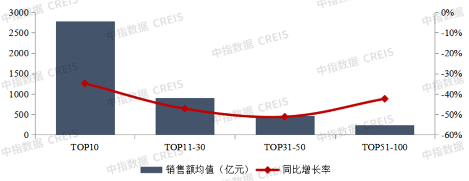 - TOP100房企銷售額同比下降42.1%,降幅較上月收窄1.3個百分點