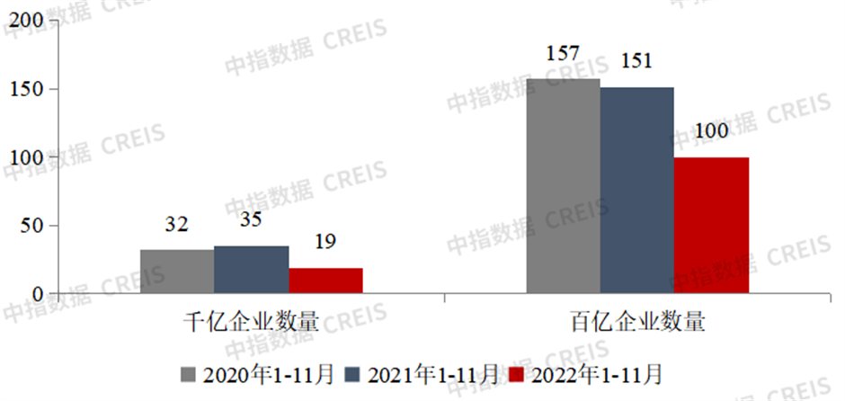 特別聲明:房地產企業銷售數據統計是以2022年1月1日-11月30日期間銷售的并表商品房為統計口徑,主要依據CREIS中指數據在各地的銷售監測數據,并參考當期總體經營情況和推盤去化情況進行分析統計;對于少數沒有在監測范圍內的城市或項目,由企業提供相關證明文件,經課題組對數據進行嚴格審核,也納入統計范圍。本報告僅供參考,課題組不對使用報告及其內容所引發的任何直接或間接損失承擔責任。