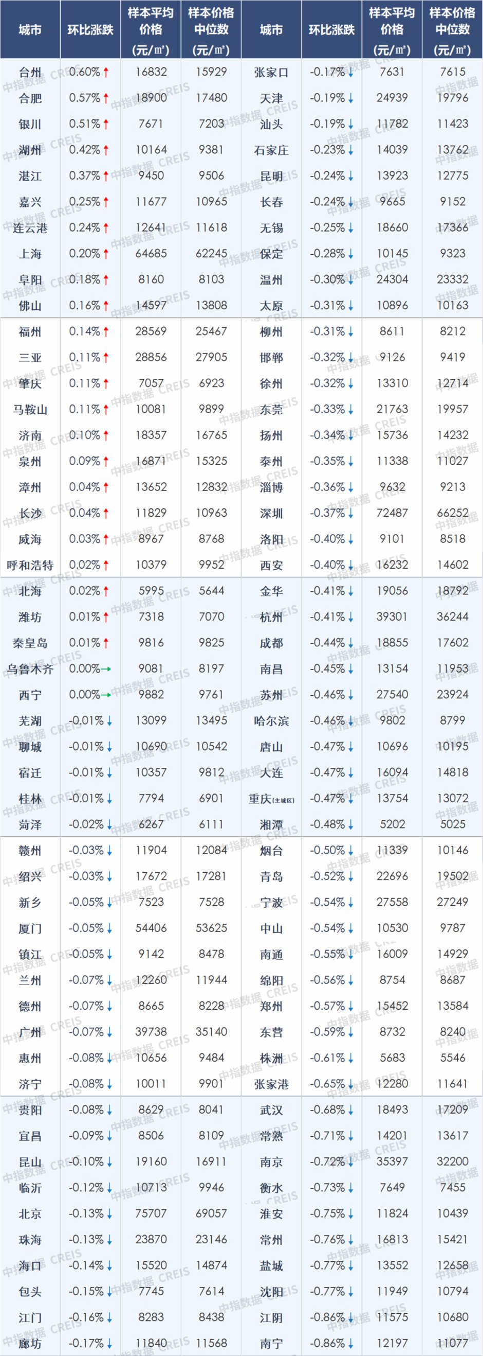 2010年起,中國房地產指數系統啟動“百城價格指數”研究,每月發布100個城市新建住宅價格指數,用以反映全國各主要城市房地產市場運行狀況及發展趨勢。百城價格指數運行十年,中指研究院基于房地產市場發展變化情況及市場活躍度,于2020年6月,對百城中部分樣本城市進行替換,將 “日照、營口、寶雞、吉林、鞍山、鄂爾多斯”六個樣本城市,替換為“臨沂、阜陽、漳州、濟寧、肇慶、張家口”。百城新建住宅整體價格水平自2020年7月1日起采用新百城新建住宅價格水平對外發布,同環比均為可比口徑。新建及二手住宅價格指數樣本城市一致。