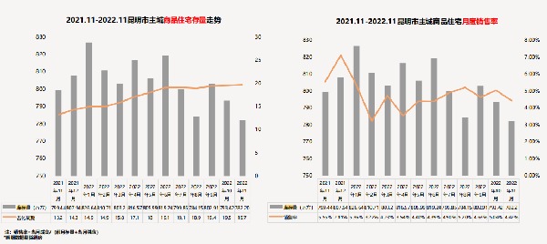 但值得注意的是,由于住宅成交量同時也在縮量,導致主城住宅去化周期因此延長。以11月成交數據為例,主城新房商品住宅成交僅24.46萬方僅相當于去年同期59.2萬方成交量的一半不到,住宅銷售率(當月成交/(前月存量+當月供應)降低至4.42%,去化周期則升至19.7個月。