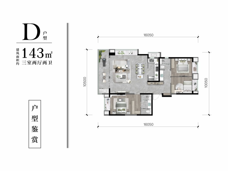 105平米作為剛改、首改青睞的面積段,其實做出了高改的水準,3米的層高對標豪宅尺度,6.3*1.8m的開間以及陽臺尺度在這個面積段不多見。