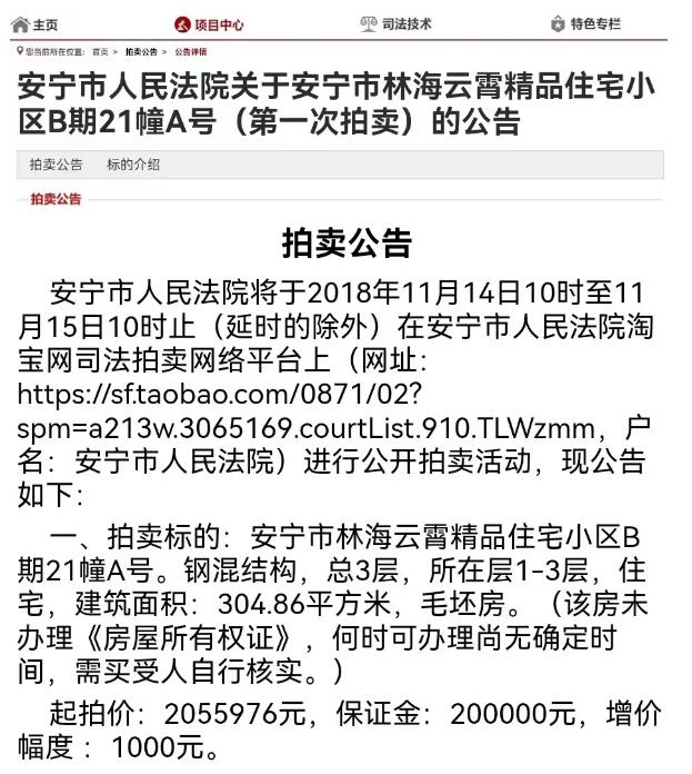 云海林霄項目第一次拍賣公告截圖