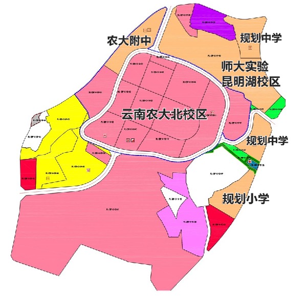 5月24日,昆明市自然資源與規劃局公布了云南農大北校區控詳規,在用地規劃上,云南房網意外發現,在云南農大北校區以及周邊,有多達5塊中小學教育用地,而且面積都不小,又基本連在一起,其中中學用地有3塊,小學用地有一塊,中小學用地有一塊。