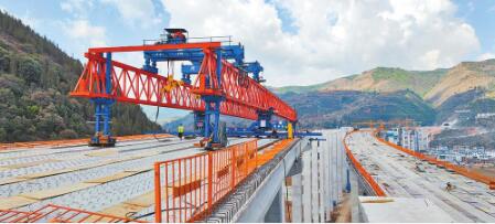這幾天,小屯特大橋建設工地塔吊林立,砼車來回穿梭。大橋上,橘紅色的架橋機在平均高50米的墩柱上穩步作業。近百名工人身著工服、頭戴安全帽、腰系安全繩,在空中或在地面樁基、墩柱、鋼箱梁拼裝……
