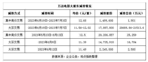 據觀點新媒體統計,自5月23日至7月7日,萬達投資通過集中競價交易、大宗交易兩種方式共計減持5658.52萬股,減持價格11.49-12.68元/股,占總股本2.5964%;按金額計算,減持共計套現約6.72-6.80億元。