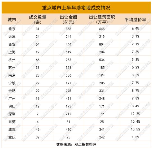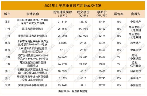 值得注意的是,上半年10宗大額成交地塊均以較高的溢價率成交,顯示出房企對市場的充足信心。
