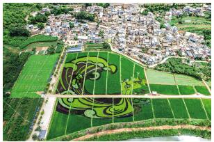 牧羊村的彩色水稻種植圖案名為“激流勇進 活力溫泉” 供圖