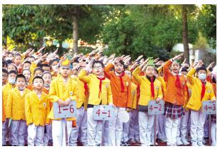 升旗儀式,同學們舉手敬禮 ■ 都市時報全媒體記者 楊林波