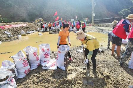 三猛鄉組織黨員群眾防汛。