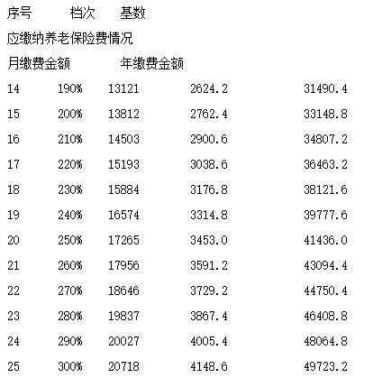 在繳費基數(shù)與應繳金額標準上,2023年,個體靈活就業(yè)人員共有25個繳費檔次供參保人員自主選擇(各繳費檔次見上表)。繳費基數(shù)一經(jīng)繳費人員確定,本年度內(nèi)不得變更。