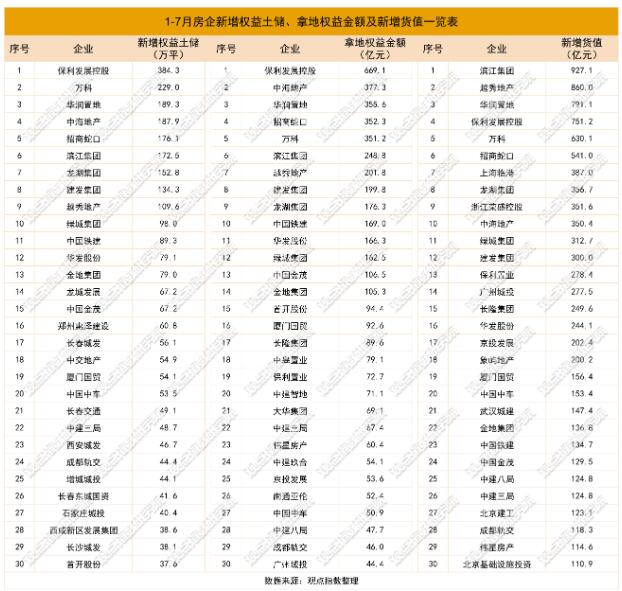 前7月50家企業拿地超4300萬平,淡季土儲增長節奏放緩
