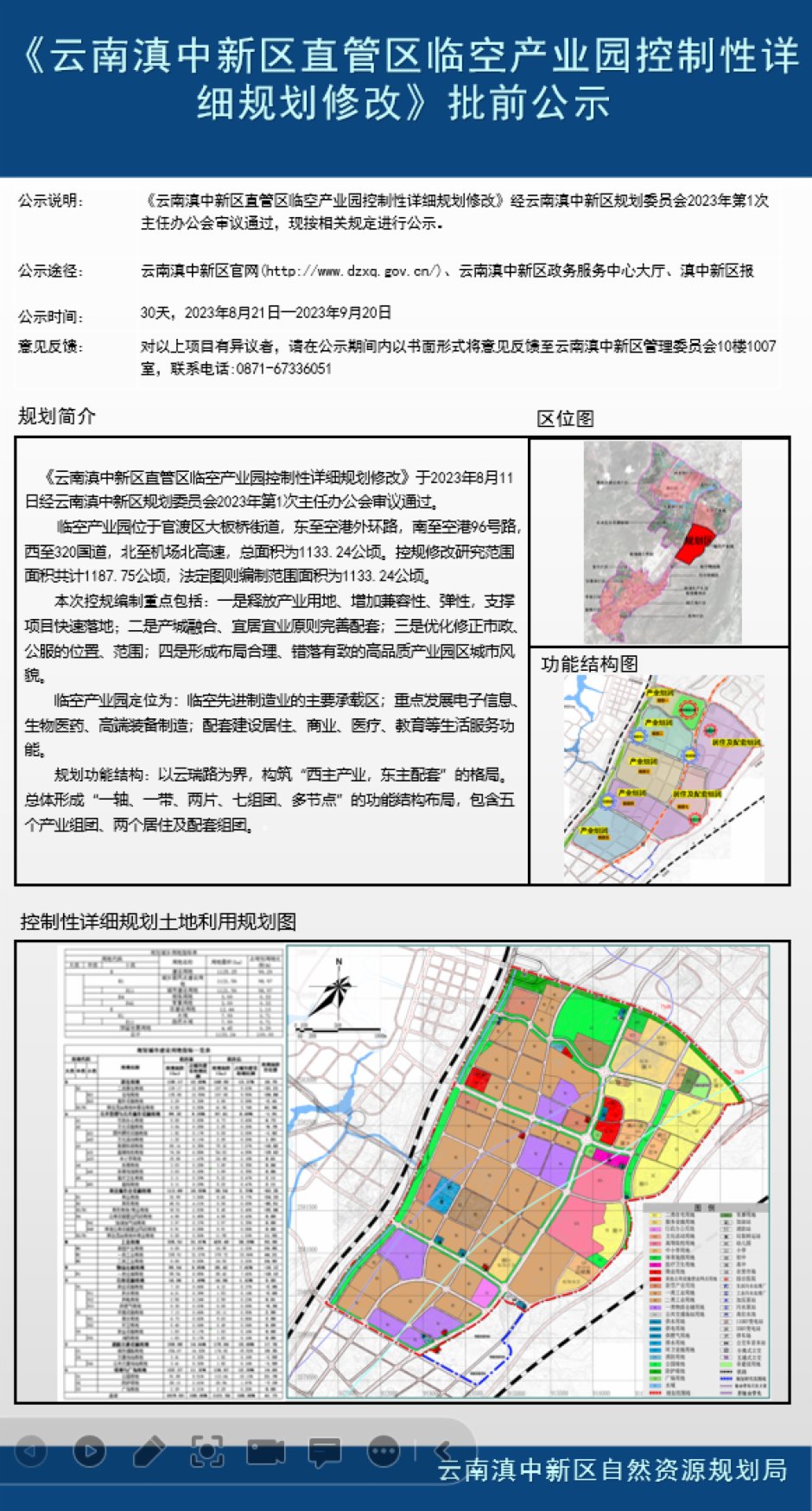 近日,滇中新區(qū)官網(wǎng)發(fā)布了《云南滇中新區(qū)直管區(qū)臨空產(chǎn)業(yè)園控制性詳細(xì)規(guī)劃修改》批前公示。