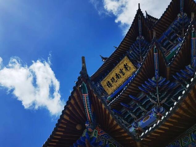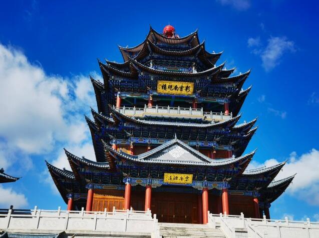 在這里看云特別美,樓似乎就建在彩云之中,美不勝收。游客在這里還可以看到整個祥云壩子,可謂是極目千里。