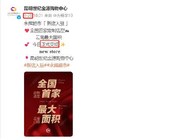 隨著永輝的落地營業,世紀金源也將成為昆明首個擁有雙超市的購物中心。