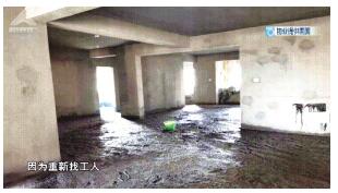 “7月底進場,先是做了地平,因為房屋有沉降,沉降過程中樓板會錯位,找地平用了水泥和砂漿,所以漏了水到樓下,當時就停工沒做了。后來我把裝修團隊換了,又重新花錢做了地平。做了地平后,8月繼續施工,到9月做最后的地平,沒想到全屋都做了防水,但還是漏水,就又停工了。”周先生說,出現問題后,他也想找樓下住戶協商解決此事,卻吃了“閉門羹”。