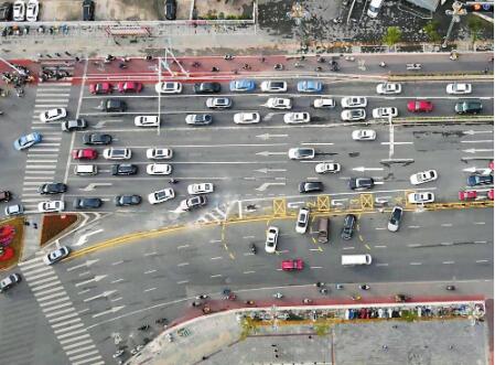據(jù)昆明市公安局交警支隊民警介紹,“多車聯(lián)動式掉頭”車道的投用,縮短了掉頭車輛通過路口所需時間,增加了單位時間內(nèi)掉頭車輛通過的數(shù)量。滇池路與環(huán)城南路交叉口高峰期車輛排隊時間較長現(xiàn)象進(jìn)一步得到緩解。