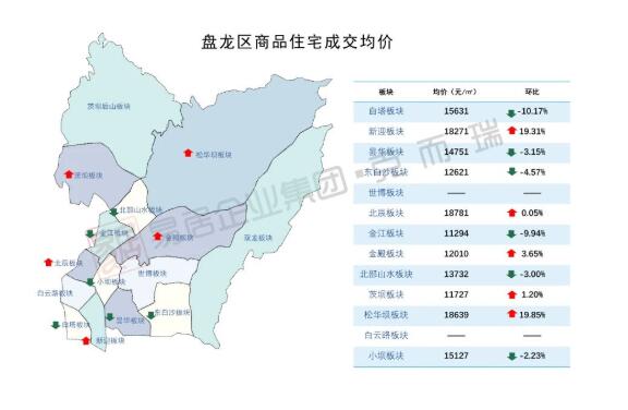 在9月有商品住宅成交的40余個板塊中,22個板塊成交均價環比上漲,漲幅最高的是呈貢中心板塊60.31%。其大幅波動的原因,主要是前幾個月花香滿徑項目低價集中備案,從而拉低板塊成交均價,9月該項目低價備案量減少,板塊成交均價回升至9024元/平方米。